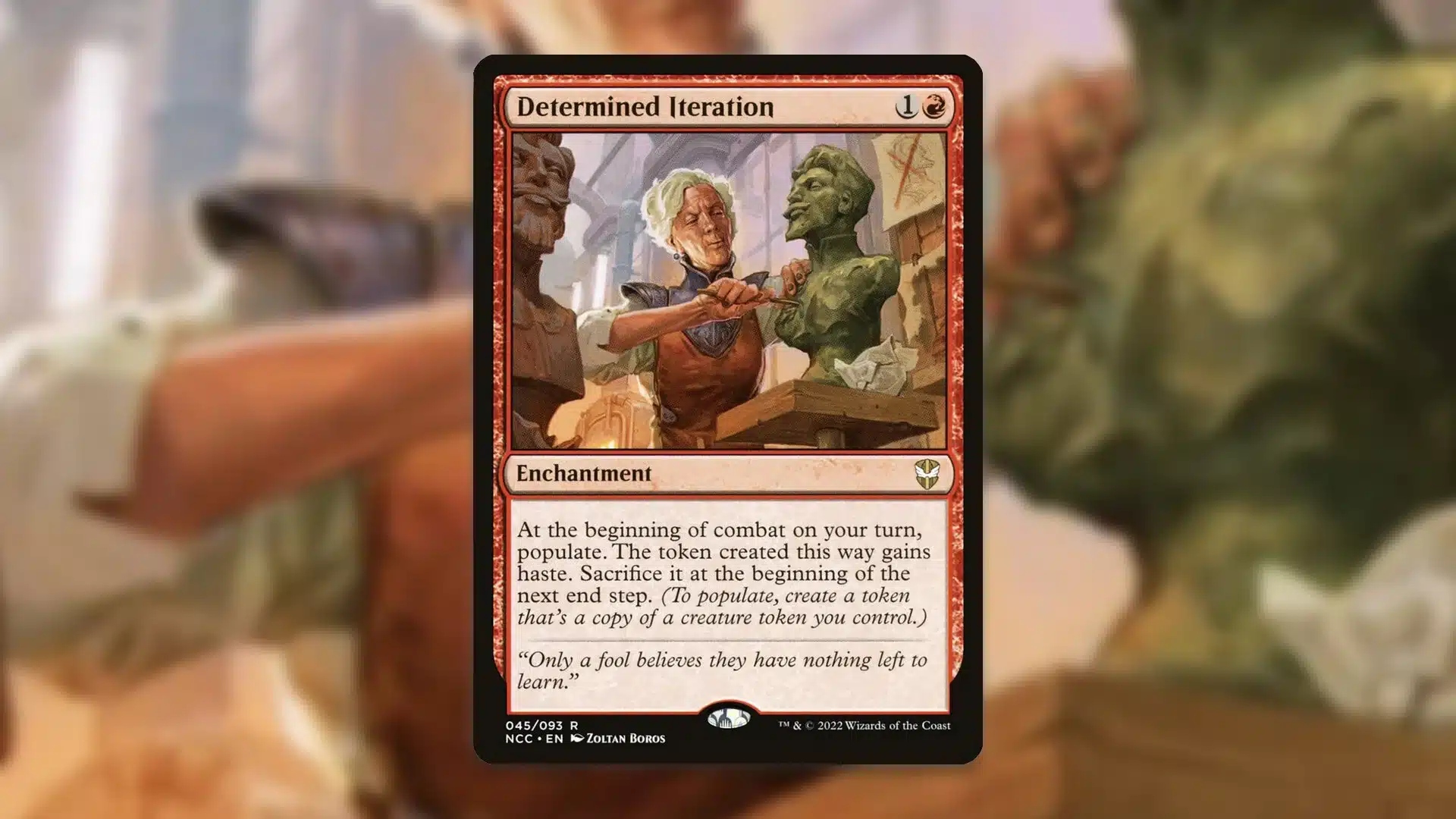 Where Determined Iterations shines brightest is in Commander decks that are capable of making tokens with strong enters-the-battlefield effects. For example, with Mishra, Eminent One at the helm, you can use Mishra to make a token copy of an artifact like Ichor Wellspring, then make another copy with Determined Iteration, and draw a good chunk of cards out of the deal.