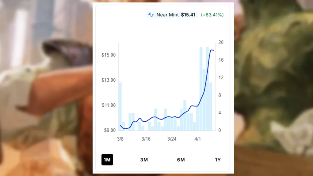 As big as the spike for traditional copies of Determined Iteration was, the spike associated with the extended art variant is much higher. On March 10, the market price for the extended art versions of Determined Iteration rested under $8.