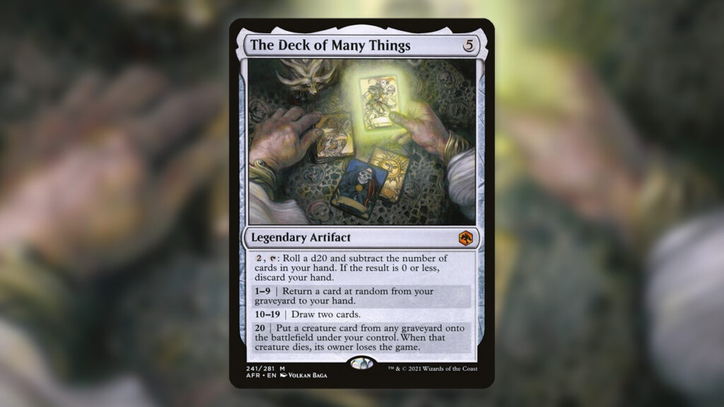 The Deck of Many Things is yet another alternate win condition focused on dice-rolling. Like Luck Bobblehead, trying to win with this card is likely a fool’s errand, but getting some value out of it alongside Mr. House is trivial.