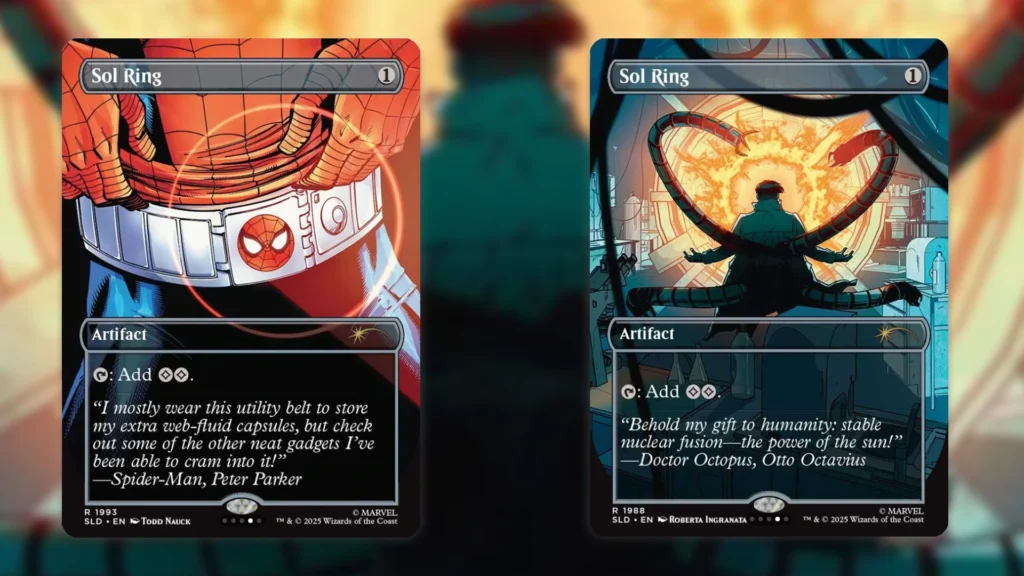 Even still, it’s important to note that these versions of Sol Ring, Lightning Greaves, and Command Tower could be worth much more than their traditional counterparts. These Secret Lairs will likely be in high demand regardless due to the popularity of both the Spider-Man franchise and the Commander format, where these three cards reign supreme.