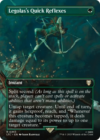 Out of the cards we’ve seen so far, Legolas’s Quick Reflexes looks to be an incredibly interesting option for Legacy players to experiment with. Should this card not be introduced to Magic Online, it would be a real travesty. Considering the track record for getting Universes Beyond Commander cards online is not great, players are already beginning to worry that this is a real concern.