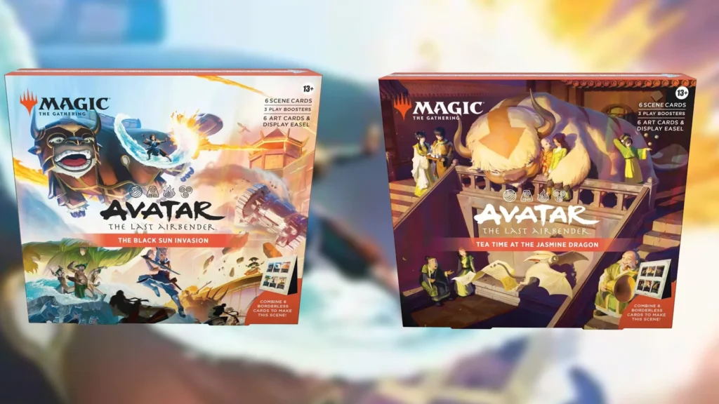 Thanks to early product images, we now know that two new Scene Boxes will be coming to MTG with Avatar: The Last Airbender. One depicts the failed Black Sun Invasion by the allies, while the other illustrates the final scene in the series after Aang takes down Firelord Ozai.