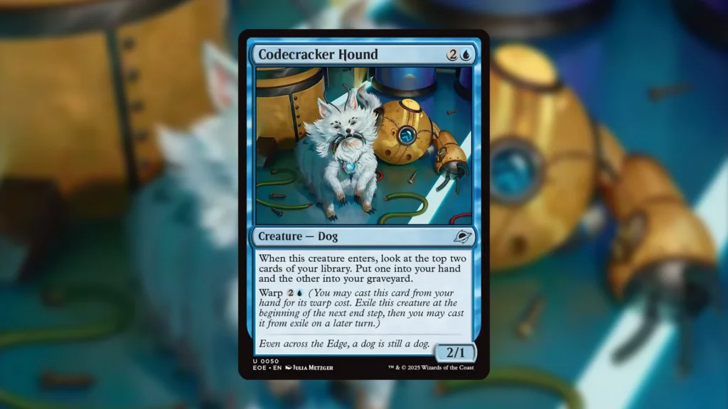 For any drafters proficient at Tarkir Dragonstorm, this good boi’s strong early performance shouldn’t be that surprising. Sibsig Appraiser is almost identical to this card, and that was the best common in Dragonstorm by a very big margin. Codecracker Hound is even better than the Appraiser, especially in a format as slow as Edge of Eternities.