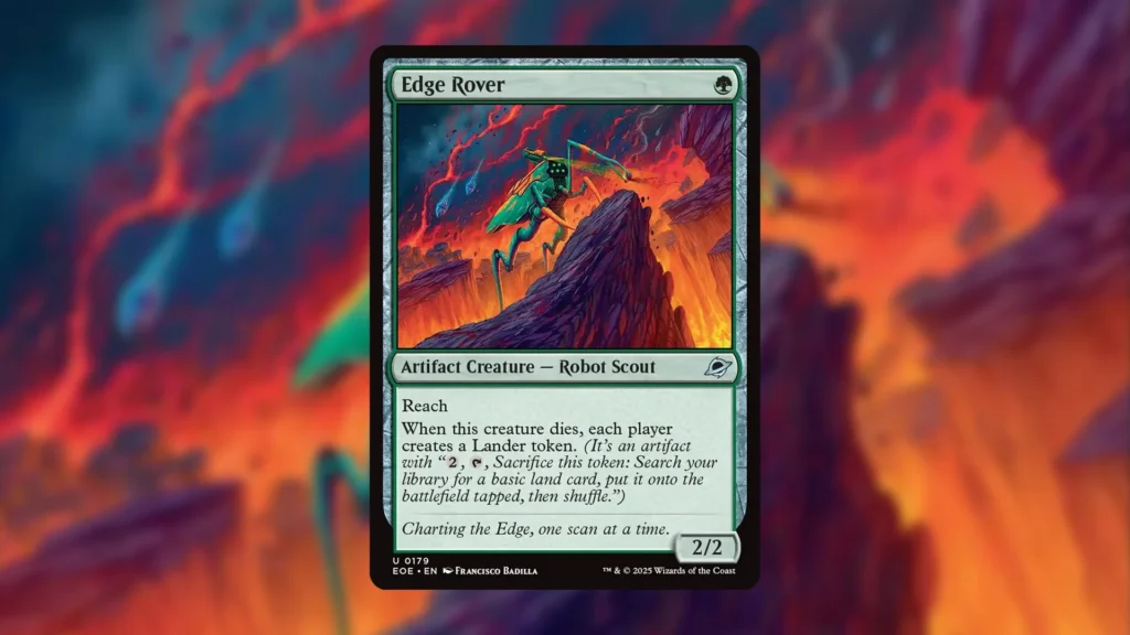 At the time of writing, the card with the highest win rate in Edge of Eternities is Edge Rover. The one-drop has a lot more going for it than it may seem. Edge of Eternities draft is an incredibly slow format, meaning that Edge Rover can usually get a decent chunk of damage in if it enters early. The card also synergizes with a ton of different themes within the set.