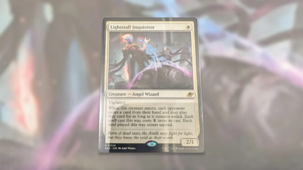 As a 2/1 with Vigilance for one mana, Lightstall Inquisitor hits hard for a one-drop. From there, its enters-the-battlefield ability slows your opponent down by making one of the cards in their hand cost more mana or enter tapped if they exile a land instead. This is surprisingly annoying for the opponent, even if you don’t get to select a card of your choice like with Elite Spellbinder. The tax can even become compounded when played alongside cards like Aven Interruptor.