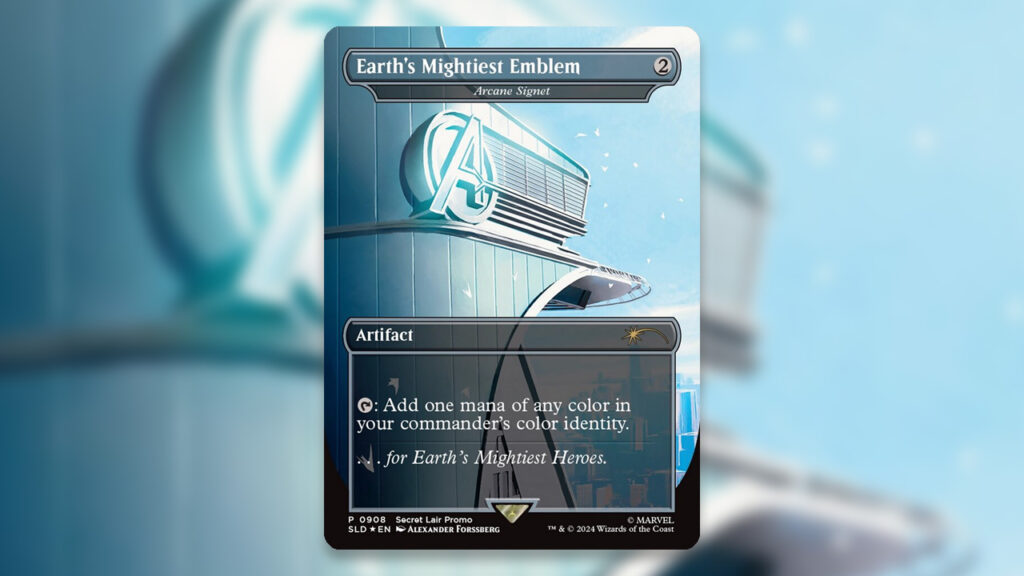 While the promotional cards aren’t worth anything near the required threshold, they aren’t too shabby, either. The Scarab God and The Scorpion God are two examples of past Secret Lair bonus gifts. The most recent example of this appeared in the Marvel Secret Lair Superdrop as Earth’s Mightiest Emblem, a reskinned version of Arcane Signet. While that card is only worth about $20, it is a rather large premium considering that the average Arcane Signet isn’t even worth a dollar.