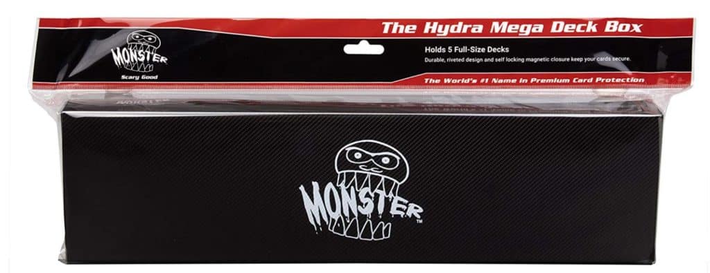Monster deck boxes use a durable, riveted plastic, and the Hydra 5 uses two large magnets to ensure your cards are kept safe.