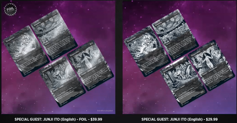While I personally am a Junji Ito fan, I think the best value for your money amongst these Secret Lairs is probably the foil Space Beyond the Stars lair. That said, the Post Malone Secret Lair was recently revealed, and its value surpasses all of the Secret Lairs seen here. Additionally, an Advent Calendar-style Secret Lair was recently announced, which may be the most valuable Secret Lair ever printed. Whatever your fancy may be, there are a lot of exciting products to choose from.