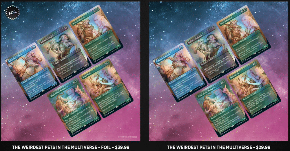 Unlike the other Secret Lairs on this list, Totally Spaced Out only has one version for $49.99. This edition will feature the Galaxy Foil treatment – a new premium foil used for the Unfinity set.