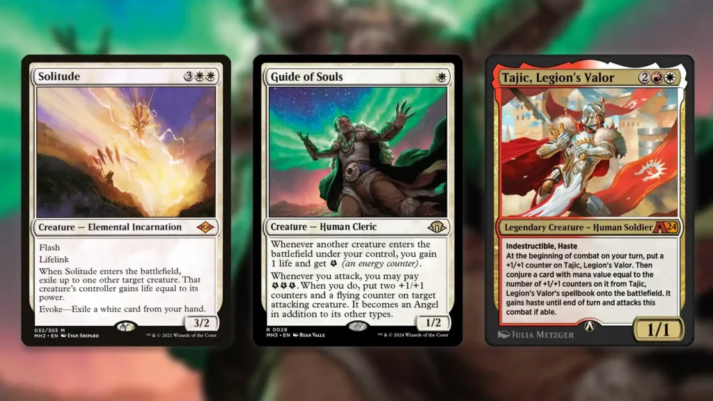 One of the most noteworthy aspects of the announcement is just how much white aggro shells improve thanks to the unbans. The decision to unban Guide of Souls, Solitude, and Tajic, Legion’s Valor is very intriguing, considering that these same three cards were added to the ban list back in June of this year. The Gladiator Council made it clear at that time that white had been a dominant color for quite some time, and the goal was to address some of the more homogenous elements white decks had access to. Now, the only white card remaining on the banlist is Ajani, Nacatl Pariah.