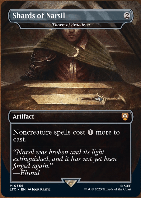 This makes Thorn of Amethyst one of the worst cards to open in your Lord of the Rings: Tales of Middle-earth box topper slots, but it isn’t necessarily a bad reprint. The Brothers’ War reprint of the Thorn was absolutely excellent – which has unexpectedly made this one feel obsolete.
