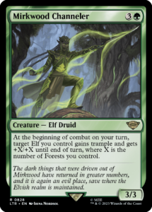 Mirkwood Channeler is the cheapest of the new Jumpstart volume two cards. For four mana, Mirkwood Channeler grants a lucky Elf you control a buff equal to the number of Forests you control.