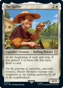 I have a feeling that The Gaffer will turn out to be a lot less powerful when I play it than when other people do. Alongside Gwaihir, Greatest of the Eagles that three life per turn threshold is incredibly important to meet to gain advantage. While Food and Fellowship suggests the best way to do that is through generating Food and paying mana, there are a variety of cards throughout Magic’s history that can give you that extra bit of life gain on every turn like Sun Droplet or Zuran Orb in a pinch.