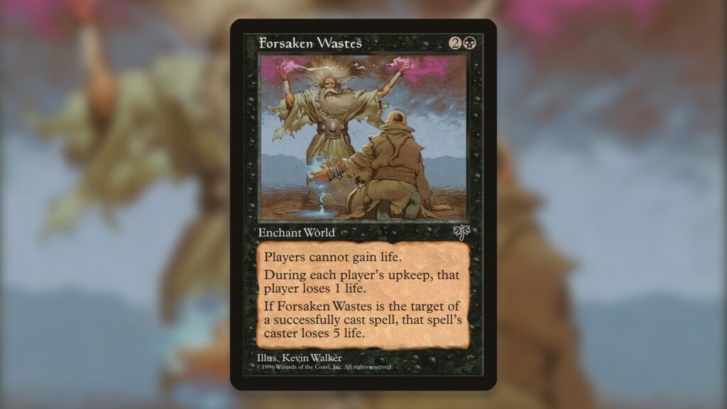 - Card Text: Players cannot gain life. During each player’s upkeep, that player loses one life. If Forsaken Wastes is the target of a successfully cast spell, that spell’s caster loses 5 life.