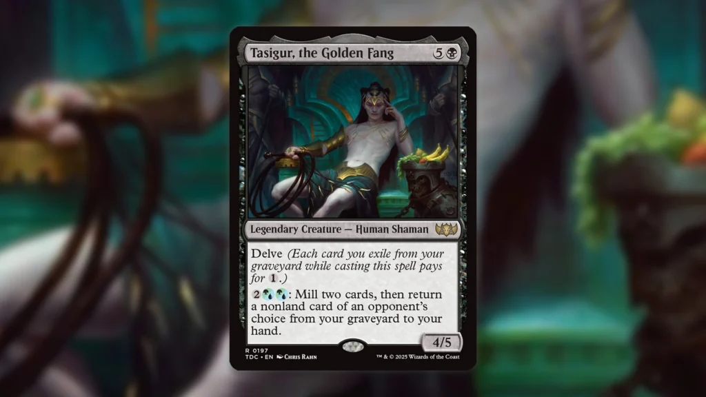 Tasigur’s body being as efficient as it is gives control players a better opportunity to interact on the same turn they cast the Commander. Thanks to this, Tasigur becomes a notable clock against combo decks, while shoring up early aggro attackers. Fighting over the Monarch and Initiative is extremely important, too, and its efficiency and beefiness helps a lot in this regard.