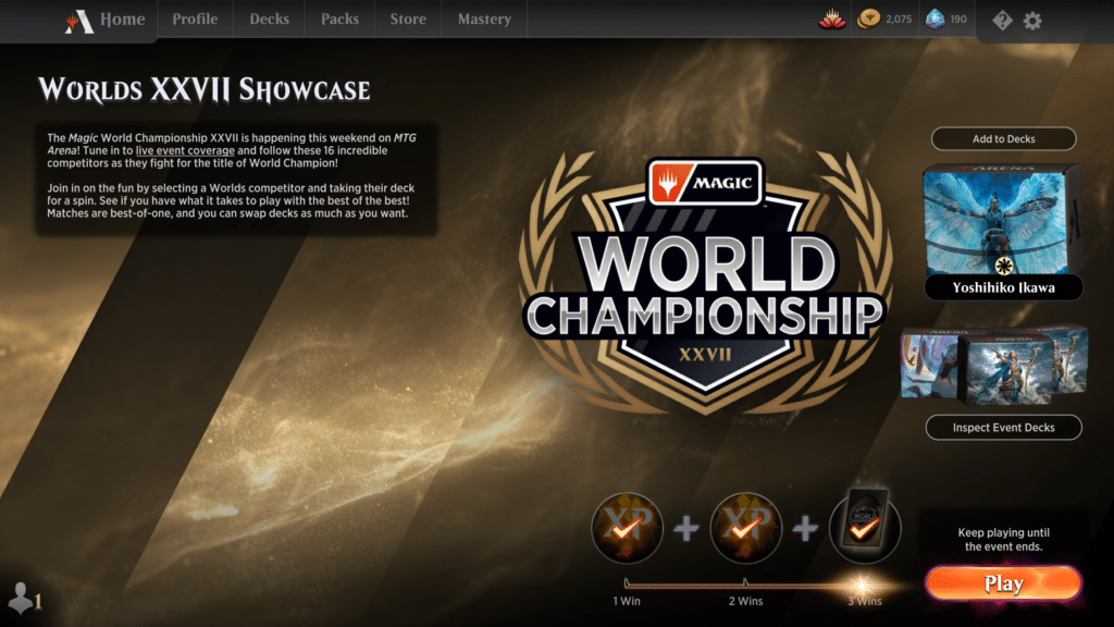 Today is the first day of the Magic: the Gathering World Championships, and as tradition, Magic Arena has a temporary game mode based on the event.