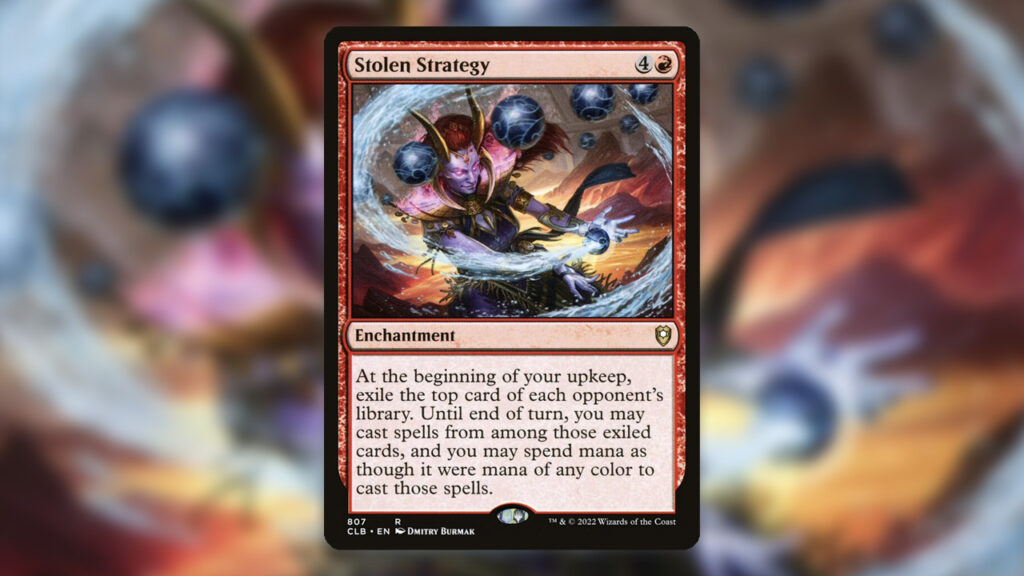The deck features many enchantments, and a few at five mana. Compared to Wild Wasteland at only three mana, Stolen Strategy is just too costly and likely has no synergy with your deck because you’re playing everyone else’s.