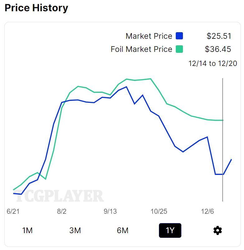 Goldspan Dragon isn’t used much outside of Standard. It will still have some relevance in Commander inside dragon decks like The Ur-Dragon. But because it is almost entirely absent from older formats like Pioneer and Modern, its price should continue to trend downward as we approach the next Standard rotation.