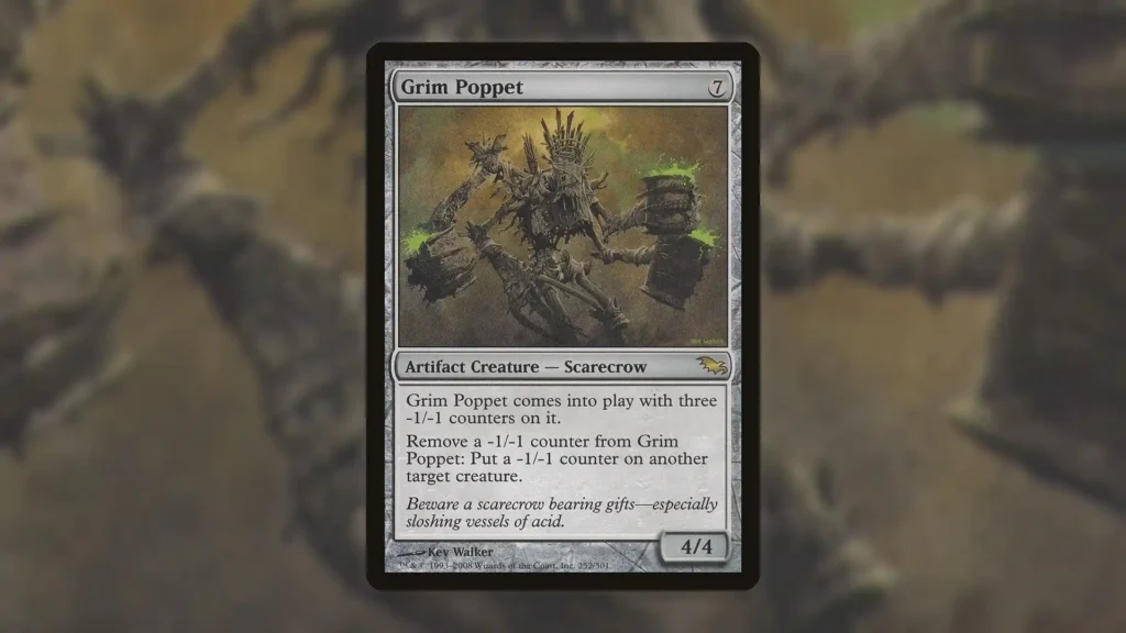 By itself, Grim Poppet may not look like anything special. While getting to distribute three -1/-1 counters among other creatures can be powerful, seven mana is a lot to pay for that effect. Luckily, when you pair Grim Poppet with some other cards, you can get additional value out of your artifact creature.