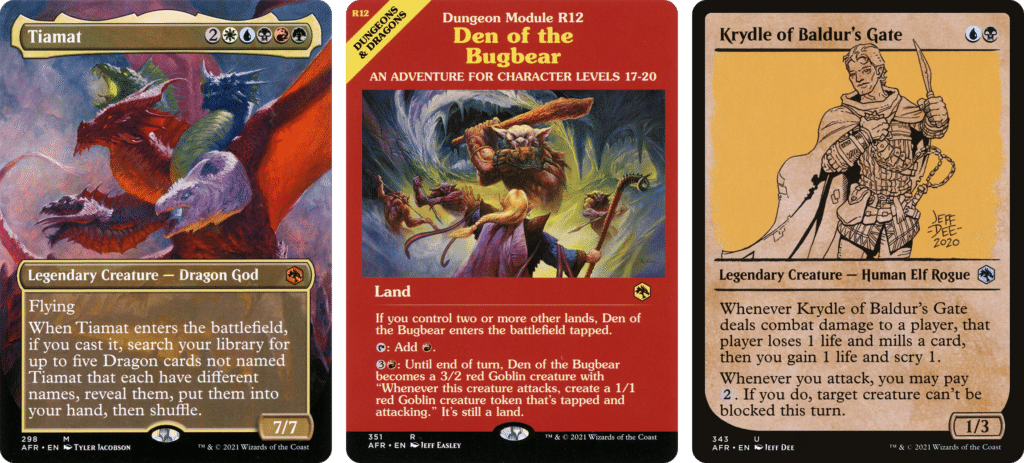 In Forgotten Realms, there are Storybook and Module cover cards to collect which reference the original D&D sourcebooks. Also, you have extended frame cards that show off different art.