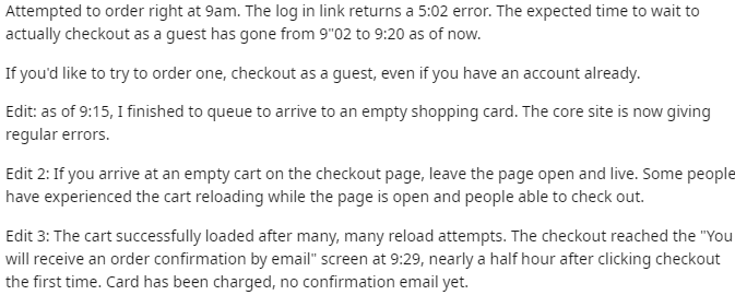 Reddit and Twitter posts from MTG icons were quick to highlight the mayhem caused by this limited-edition product. Many experienced errors that crashed the site, making this product even more difficult to acquire: