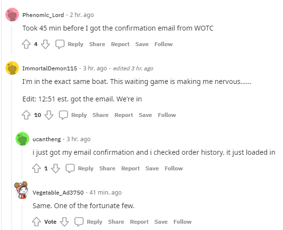 This sentiment was shared amongst hundreds of nervous MTG players who worried they were being charged while receiving no product. Fortunately, it looks like things are slowly resolving for those waiting in limbo.