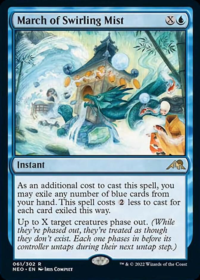 Both Disorder in the Court and March of Swirling Mist are super versatile in this deck. You can cast them to save your creatures in the face of opposing removal spells. But you can also use them as a form of disruption, targetting key creatures your opponents control when they are about to perform a combo or all-out attack.