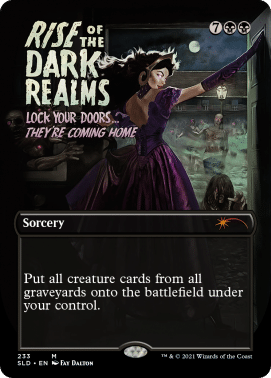 Emergent Ultimatum has some great combos here as well. We can pick Elesh Norn, Overwhelming Splendor and any other bomb, and if our opponent gives us the first 2, it’s a consistent board wipe. Also depending on the game state, if we have a lot of creatures and a Rise of the Dark Realms in our Graveyard, we can pick Scholar of the Lost Trove, Mizzix’s Mastery, and any other card and guarantee a full reanimation of our bin.