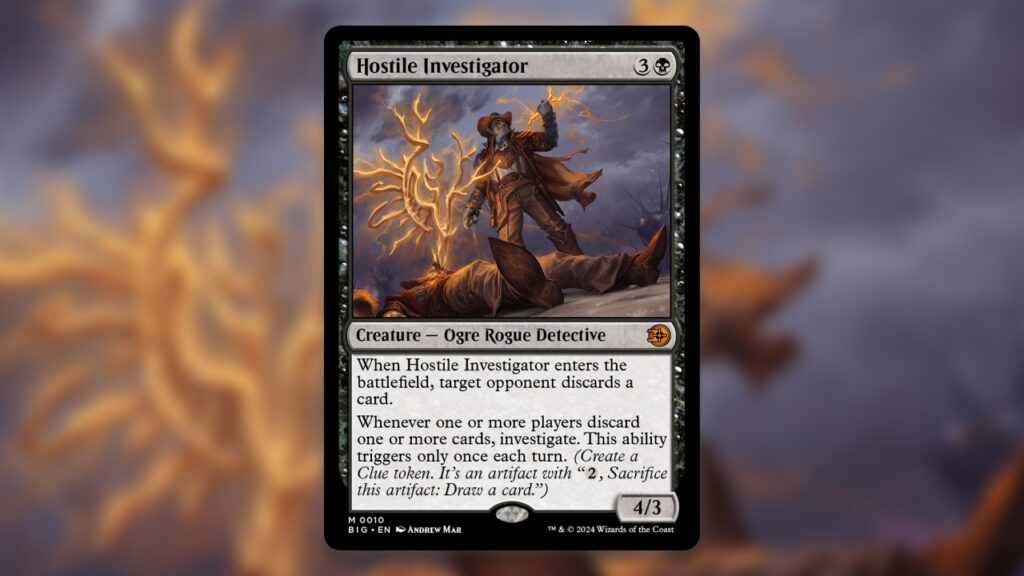 It’s been truly fascinating following the saga of Outlaws of Thunder Junction’s The Big Score sub-set. The fact that it exists in the set at all is a result of the backlash against Aftermath sets. On top of this the fact that every card within it is a Mythic Rare has led many players to wildly misevaluate most of them. One by one, these cards are being seen for the big hitters they are, and next in line is Hostile Investigator.