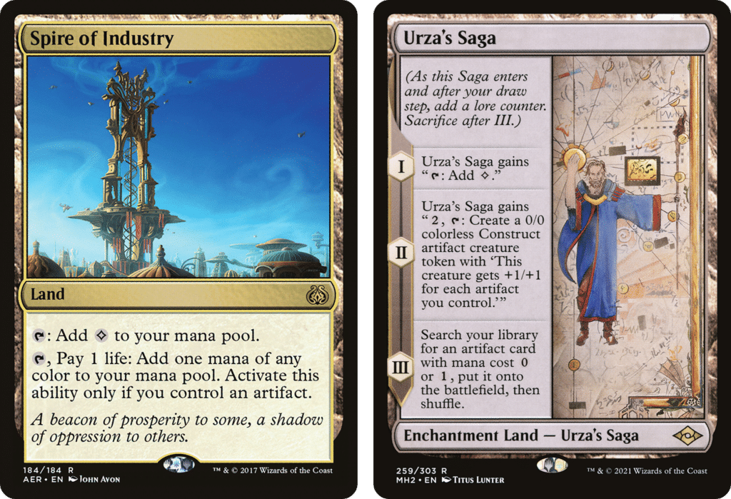 With the omission of Urza’s Saga, we’re replacing these with Spire of Industry, Razortide Bridge, and an Island until you can grab the rare from Modern Horizons 2. There are a couple of extra copies of Welding Jar to ensure you can keep your threats alive, and helps pay for various Affinity costs.