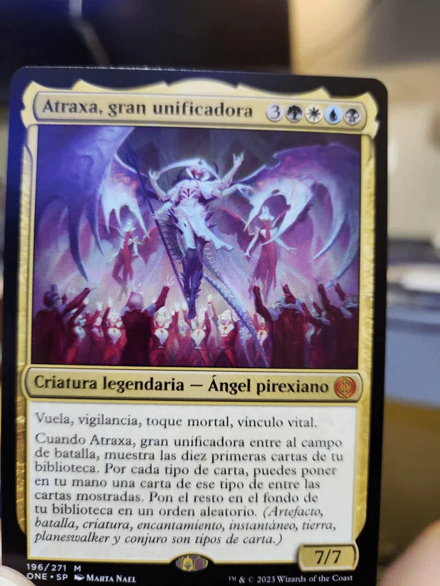 It did not take long for this Atraxa leak to spread all over Reddit. Notably, the leak has this card titled Atraxa, the Unifier, but according to some quick Google translate, it may also read as Atraxa, Grand Unifier.