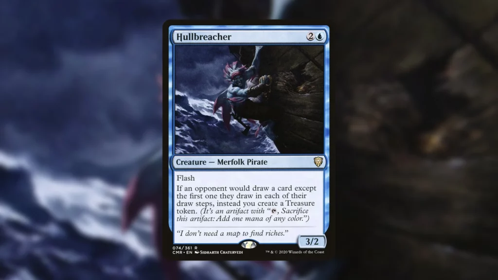 Any card an opponent would draw outside their one card per draw step gets turned into a Treasure Token for you. Hullbreacher stops almost every card advantage engine in the Commander, which is already a disgusting amount of value.