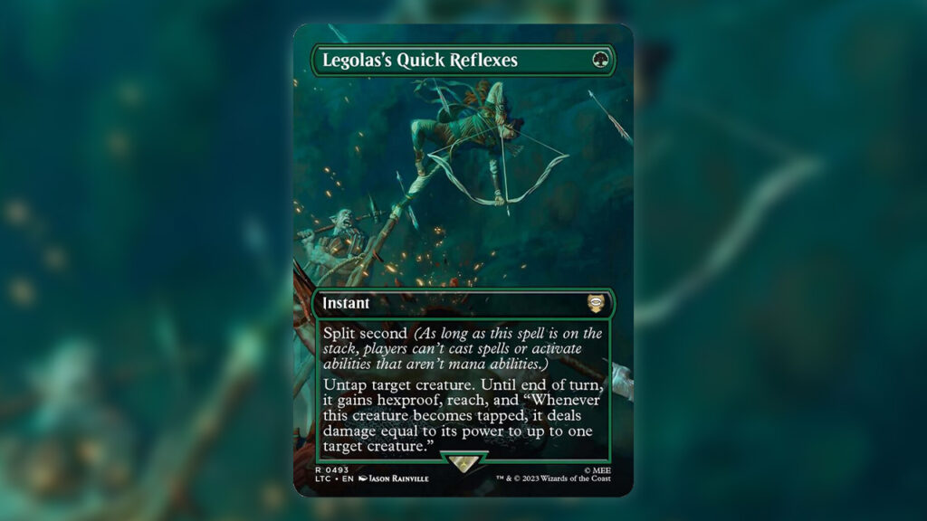 The Lost Caverns of Ixalan is the most recent full set. But the Lord of the Rings holiday release, although small, has some stellar cards. In particular Legolas’s Quick Reflexes gives green an incredible piece of interaction for only one mana. The card is incredibly flexible and does several things all at once. It is completely irreplaceable and virtually unstoppable. All that for one mana makes it a no brainer for every green deck.