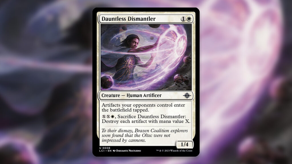 Featured in a significant number of high placing decks, Dauntless Dismantler is another excellent effect in white that primarily stops Treasure from going off. Having more ways to stop Dockside Extortionist is always nice, and on top of that, it also slows down virtually every cEDH deck as they all rely on artifact mana. Printed just one month ago, the Dismantler appears to be an instant staple in many decks.