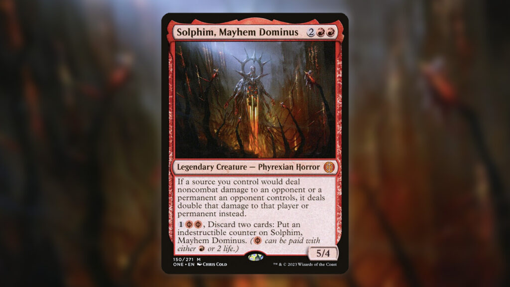 Mono-red is no stranger to cEDH, having by far the most potential of any single color. Slicer, Hired Muscle // Slicer, High-Speed Antagonist and Magda, Brazen Outlaw are legitimate choices alongside many other nearly as strong commanders like Krenko, Mob Boss. Showing up at a decently sized event and making top 4, could Solphim, Mayhem Dominus be the next new red star? Certainly it’s a powerful threat, virtually halving an opponents life total. Actually playing against a mono-red cEDH deck can be a considerable challenge.