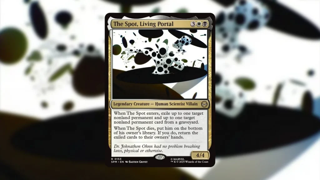 The three high win rate multicolored cards that don’t fit into any of the supported archetypes are Spot, the Living Portal, Cosmic Spider-Man, and Mister Negative, clocking in at 64.4%, 63.8%, and 62.5%, respectively. While The Spot and Mister Negative could be reasonably splashed in any of the non-red archetypes in the set, Cosmic Spider-Man’s massive win rate tells a different story.