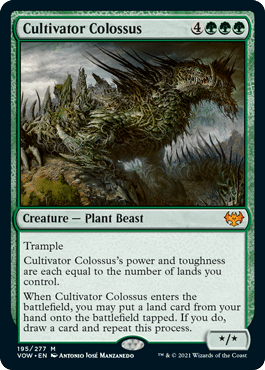 Another 7 mana creature is up next with Cultivator Colossus. This one is seriously cool and could have some crazy combo potential. That being said, the deck building around this is crazy difficult for constructed. You want to be able to ramp to him effectively, but also be able to have enough lands in deck and hand that you can combo off with the second ability. While there’s no shortage of pay offs with Landfall, finding the best build for this deck will be difficult. This is most likely a “for Commander” card as well.