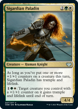 Sigardian Palain is a cool card for humans decks. We can pretty easily get this a +1/+1 counter with Luminarch Aspirant. It’s a pretty fair card but can definitely get the job done.