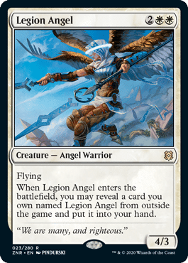 Legion Angel is a solid body and a reliable source of damage, since we can fetch subsequent copies out of the sideboard. Sigardian Savior is our make shift Return to the Ranks, but also provides another flying body.