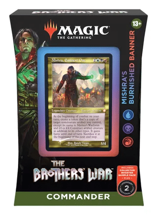 Alongside the new Brothers’ War release comes two Commander decks themed off of the two primary characters featured in this expansion. Urza and Mishra are featured as the faces of these Commander decks, showing a lot of promise. Early impressions of the two show that Mishra’s prebuilt Commander deck performs better. Mishra’s Burnished Banner is so impressive that it may be the best prebuilt Commander deck released in quite a while (if you factor in how expensive the Warhammer decks are)! Here, we will take a look at the basic gameplan of the deck, the most valuable reprints offered, and some potential upgrades!