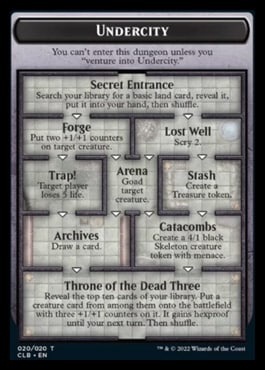 As seen on the token for The Initiative, its payoff is very different from The Monarch. Instead of drawing cards, you venture into a specific dungeon called Undercity. And unlike The Monarch, which triggers during your end step, The Initiative triggers whenever you take the initiative and in your upkeep!