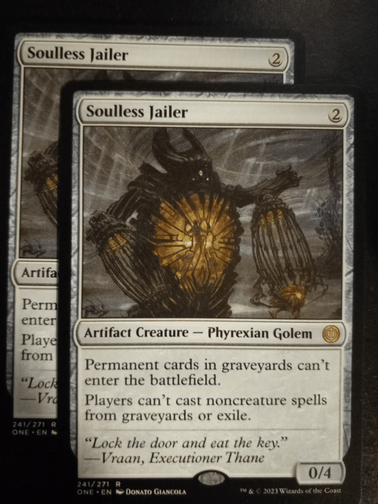 Soulless Jailer is an unofficially spoiled card in this Reddit thread for the new Phyrexia: All Will Be One set. The Jailer seems innocent enough but shuts down many of the most popular strategies in multiple formats right now. Admittedly, the card does not do a lot for the current state of Standard (except, maybe, for shutting Unearth down), but that could not be further from the truth for every other format in the game.