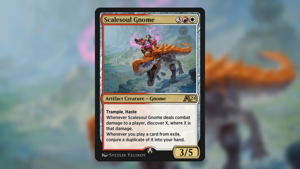 While this Dicsover effect admittedly isn’t the best, their other ability is the star. By Conjuring a duplicate of every card you play from exile, Scalesoul Gnome generates insane value. While they’re not cheap, this could have them see some fringe play.