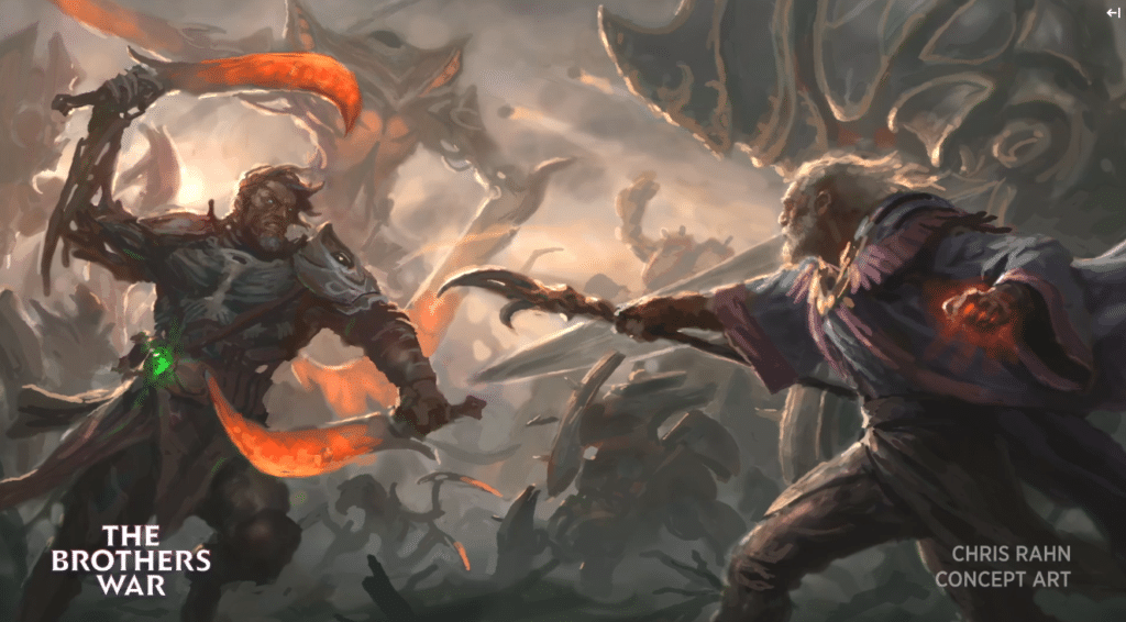 Capping off the year of Standard sets, The Brothers War will delve into the fierce relationship of Mishra and Urza. As such, their ongoing turmoil set an all-out war that moulded the future of the plane and Multiverse itself. Not a lot about the fall set yet, but it’s sure to be an exciting one.