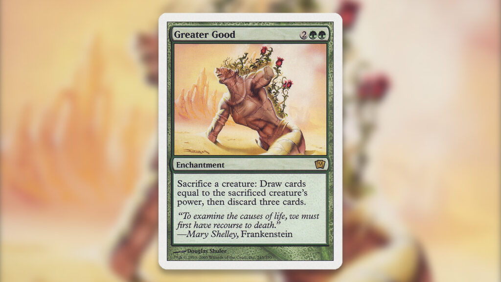 Players looking to build Anzrag, the Quake Mole in Commander have already had their eyes on Greater Good. While abusing combat mechanics is the obvious route that players want to take advantage of with Anzrag, exile effects like Swords to Plowshares and Path to Exile, which are extremely popular in Commander, can shut down a lot of the obvious ways to abuse Anzrag. Because of this, having different ways to generate value is incredibly important. Greater Good can essentially turn Anzrag into a ‘draw eight, discard three’ effect, which is insane. Combine this with other high-powered creatures with lower mana values, and Greater Good becomes an absurd engine piece.
