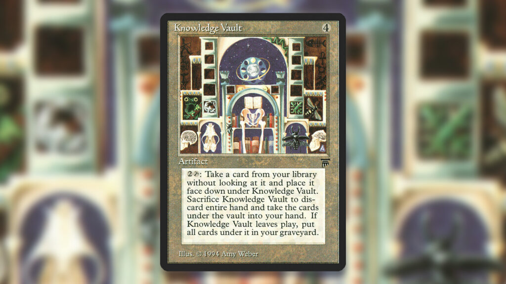 - Card Text: (2) (Tap): Take a card from your library without looking at it and place it face down under Knowledge Vault. Sacrifice Knowledge Vault to discard entire hand and take the cards under the vault into your hand. If Knowledge Vault leaves play, put all cards under it in your graveyard.