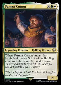 Maybe most players are looking at the Ironworks wrong. They think the only use for it is as a combo piece. Maybe it’s just an amazing enabler, and the latest thing that LotR is all about is the perfect thing to enable, Food tokens. Pippin and Samwise are all generating second, third, fourth breakfasts and you have several Food tokens lying around. Meriadoc Brandybuck becomes Magda, Brazen Outlaw because your Halflings now attack and generate a two mana token. Speaking of Magda, you can always sacrifice a Treasure to get two colorless instead of one mana of any color and it also works even if the Treasures enter tapped.