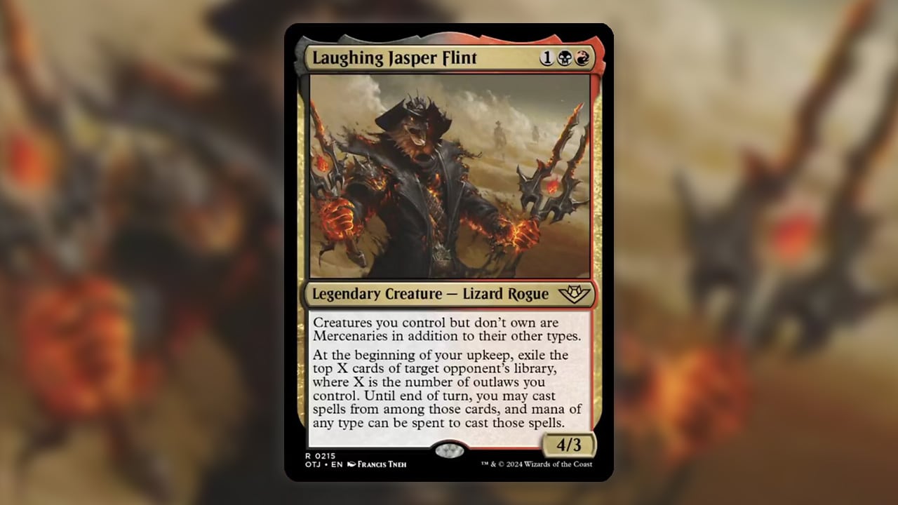 Not only does Flint enable all of the Lizard payoffs that came out of the Rakdos archetype in Bloomburrow, but many of the Lizards in Bloomburrow are also Outlaws. This bizarrely harmonic value-based enigma allows Laughing Jasper Flint to be a massive force in the Lizards deck.