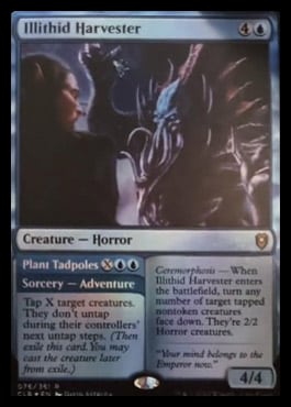 Illithid Harvester is actually really good! The creature is essentially a mass removal spell, as it turns all tapped creatures into 2/2 Horrors with no effects. And the Adventure portion of the card, which Gorion can double up, taps down creatures, setting up the mass removal spell for the following turn.