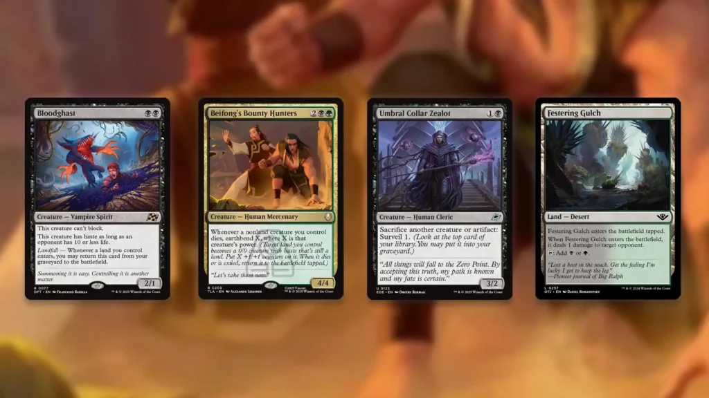 - Sacrifice Bloodghast to Umbral Collar Zealot’s ability, triggering Beifong’s Bounty Hunters
